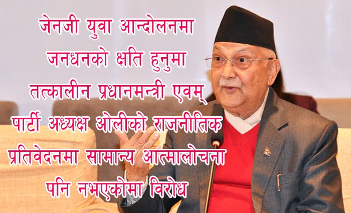 बुधबारबाट सुरु भएको नेकपा एमाले केन्द्रीय समिति बैठकमा अध्यक्ष ओलीले पेस गरेको राजनीतिक प्रस्तावमा आगामी मंसिर २७, २८ र २९ गते पोखरामा महाधिवेशन गर्ने प्रस्ताव छ । सो राजनीतिक प्रस्तावमा जेनजी युवा आन्दोलनमा जनधनको क्षति हुनुमा तत्कालीन प्रधानमन्त्री एवम् पार्टी अध्यक्ष ओलीको राजनीतिक प्रतिवेदनमा सामान्य आत्मालोचना पनि नभएको भनेर पनि विरोध भएको छ ।