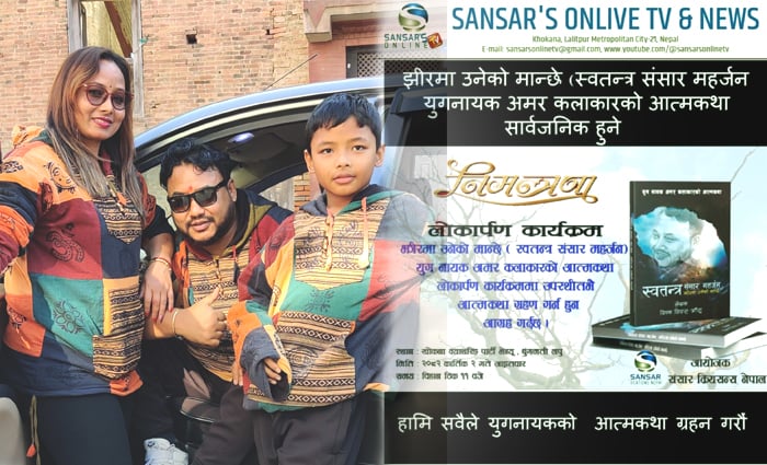 कार्तिक २ गते आइतबार एक अद्भूत व्यक्तित्वका धनी कलाकार स्वतन्त्र संसार महर्जनको आत्मकथा “झीरमा उनेको मान्छे” लोकापर्ण हुँदैछ । आफ्नो कलाकारिता प्रतिभा प्रस्तुत गर्दै जीवनमा गन्तव्यतिर यात्रारत कलाकार स्वतन्त्र संसार महर्जन दैवको लीला अपरम्पार भनेझैं गत असार २८ गते अकस्मात् यो संसारबाट बिदा भए । आफ्नो जीवनकालमा एउटा असाध्य डरलाग्दो रोगसंग जुझिरहेका स्वतन्त्र संसार महर्जन कलाकारिताको उन्नयन ह्वील चेयर र सहयोगीको सहयोगमा निरन्तर कलाकारिता क्षेत्रमा समर्पित व्यक्तित्व थिए भने स्वतन्त्र संसार महर्जनले संसार क्रियसन्स नेपाल लगायत संसार्स संगीतालय आदि जस्ता बहुमूल्य संस्थाहरु स्थापना गरी अविष्मरणीय पाइलाहरु चाल्नु भएको थियो । उनै अद्भूत र अद्वितीय प्रतिभाका धनी स्वतन्त्र संसार महर्जनले आफ्नो जीवनकालमा नै एउटा आत्मवृतान्त लेख्न शुरु गरेका थिए । सो कृतिका लेखक दिपक विवश ’आँशु’ले स्वतन्त्र संसार महर्जनको आत्मकथा लेख्न शुरु गरेका थिए । “स्वतन्त्र संसार महर्जन (झीरमा उनेको मान्छे)“ शीर्षक राखेर लेखिएको कृति ’झीरमा उनेको मान्छे (स्वतन्त्र संसार महर्जन)’ लाई “युग नायक अमर कलाकार“को जीवन परिचय का रुपमा लिन सकिने कुरा कृतिका लेखक आँशुले बताए । दिपक विवश ’आँशु’ ले यो उपाधि असत्य वा कल्पित हैन, सत्यताको परिचायक हो भनि बताए । उनै युग नायक अमर कलाकार स्वतन्त्र संसार महर्जनको आत्मकथा “स्वतन्त्र संसार महर्जन (झीरमा उनको मान्छे)“ कृति आउँदो ने.सं. ११४५ कौलागा त्रयोदसी (कार्तिक २ गते) आइतबार कार्यविनायक बुंगमती खोकनामा लोकार्पण हुने भएको छ । ललितपुर जिल्लाको खोकना क्याटरिङ पार्टी भेन्यू कार्यविनायक, बुंगमतीमा कार्तिक २ गते आइतवार विहान ११ बजे स्वतन्त्र संसार महर्जनको आत्मवृतान्त “स्वतन्त्र संसार महर्जन (झीरमा उनेको मान्छे)“ लोकार्पण समारोहमा सम्पूर्ण कला प्रेमीहरुको उपस्थितिको लागि आयोजक संसार क्रियसन्स नेपालले अनुरोध गरेको छ ।