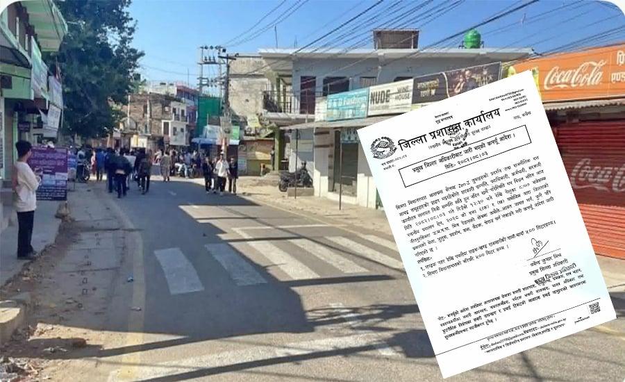 गण्डक नहरदेखि पथलैया सडकखण्डको दायाँ–बायाँ ५०० मिटर र सिमरा विमानस्थलको वरिपरि ५०० मिटरसम्म बुधबार दिउँसो १२ः३० बजेदेखि राति ८ बजेसम्म कुनै पनि प्रकारको भेला, जुलस, प्रदर्शन, सभा, बैठक, घेराउ लगायतका कार्यक्रम गर्न प्रतिबन्ध लगाइएको छ ।