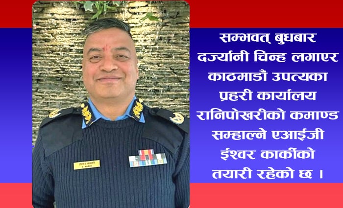 ईश्वर कार्की कोशी प्रदेश प्रहरी कार्यालयको इञ्चार्ज रहेकै बेला एआईजीमा बढुवा भएका थिए । सम्भवत् बुधबार दज्र्यानी चिन्ह लगाएर काठमाडौं उपत्यका प्रहरी कार्यालय रानिपोखरीको कमाण्ड सम्हाल्ने एआईजी ईश्वर कार्कीको तयारी रहेको छ ।